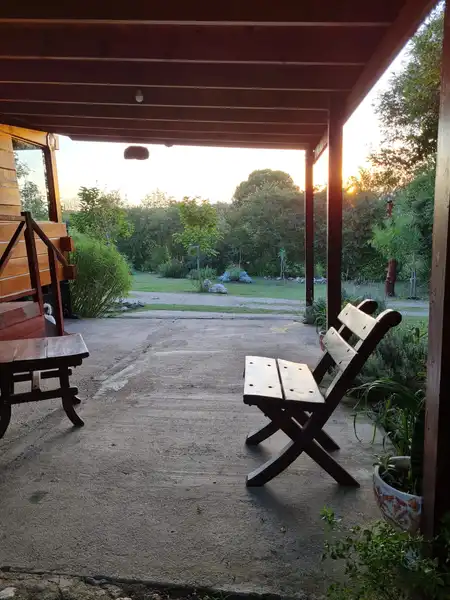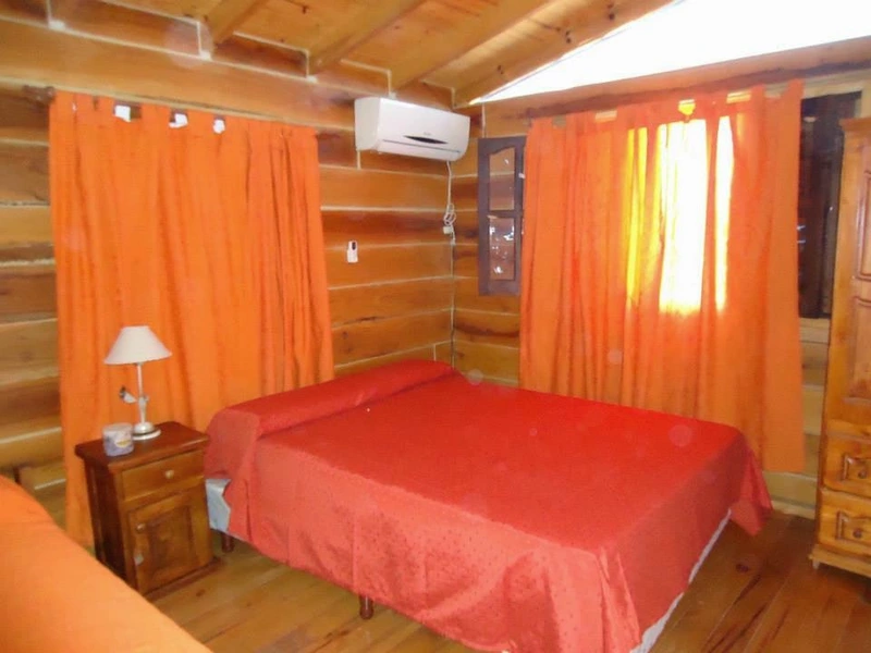 la cabaña es comoda, cuenta con una habitación cama matrimonial y una cama para un bebe y