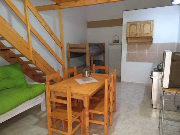 Dormitorio con cama matrimonial comedor camas marineras cocina equipada, gas natural