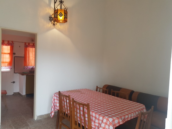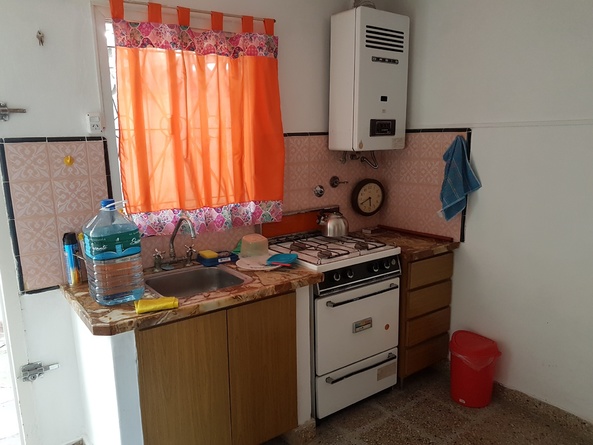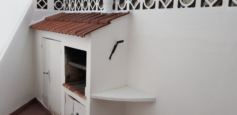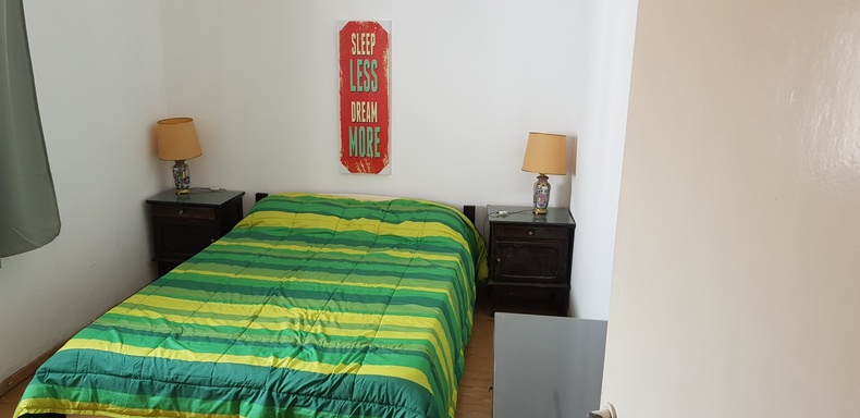 Dormitorio con cama matrimonial living comedor con un sillon cama con carrito simple - baño - patio con parrilla y lavadero- lugar para auto sin techo - TV