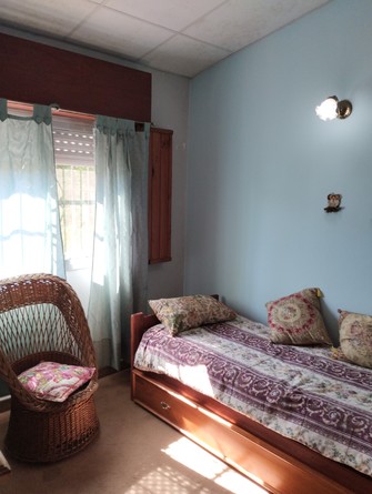 En planta alta: dormitorio con cama matrimonial con vista a la calle, dormitorio con 2 camas de 1 plaza, 1 baño totalmente instalado