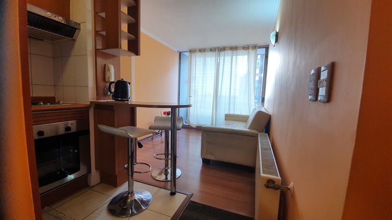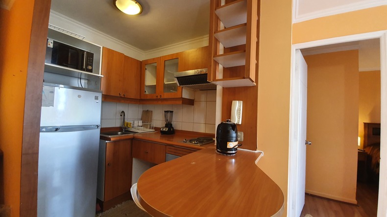 Departamento equipado con Smart tv Refrigerador hervidor microondas cocina eléctrica utensilios de cocina cercanos a clinicas universidad catolica hospital del trabajador Santiago centro cercanoa supermercado y a 2 cuadras del metro Santa Isabel
