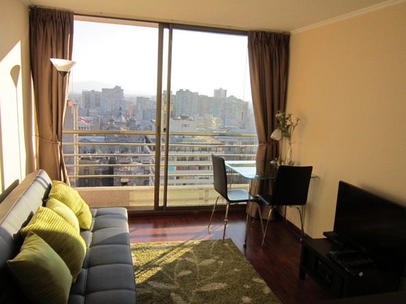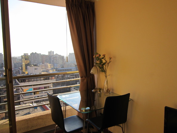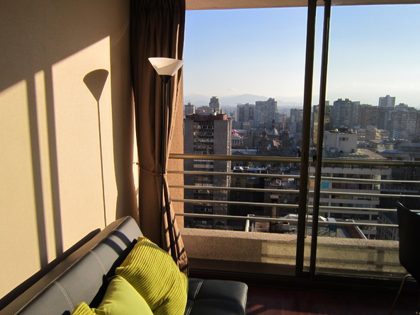 Santiago Centro calle Monjitas 744 piso 23 soleado, luminoso, vista panorámica, cerca de todo tipo de comercios, supermercados, restaurantes, cafés, museos, parques, mercado central, museos bancos, farmacias etc.