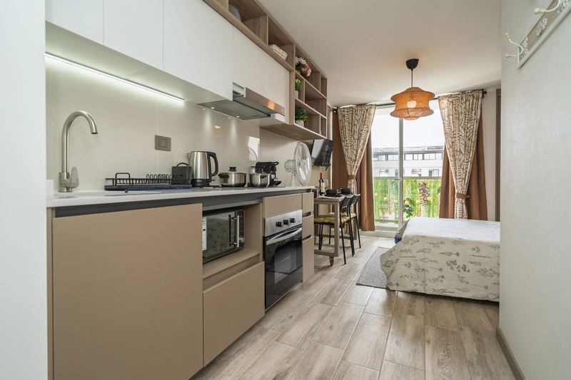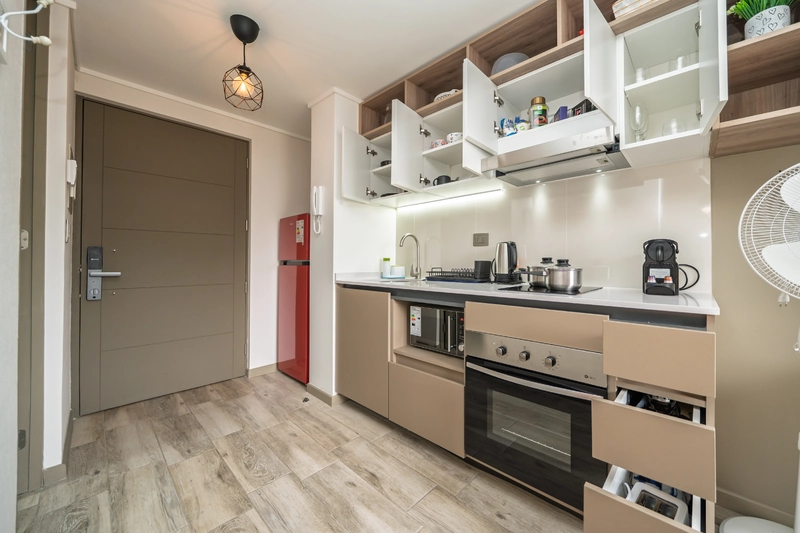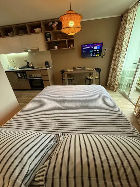 Este Home Studio ha sido cuidadosamente diseñado para brindarte una experiencia cálida y confortable, como si estuvieras en casa. Cuenta con WiFi de alta velocidad, Smart TV, lavadora-secadora y está totalmente equipado para que no falte nada durante tu estadía.
