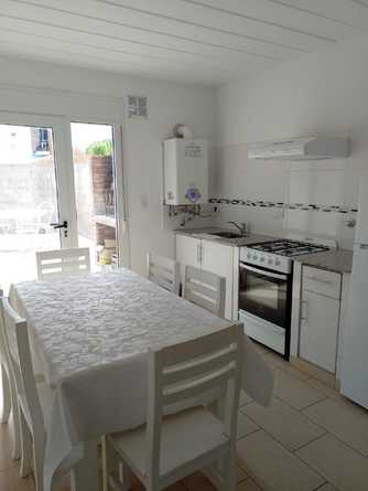 En planta baja cuenta con cocina comedor con heladera con freezer, vajilla completa, cocina con horno, pava eléctrica, microondas, tv led 32" por cable , cama de una plaza con carricama. Patio individual con parrilla.