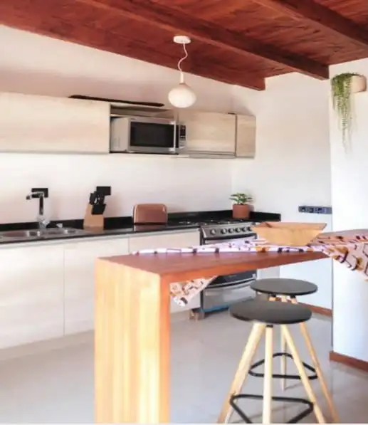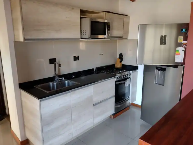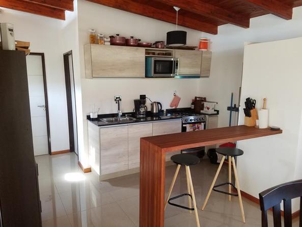 Moderna Cabaña de 1 Dormitorio con posibilidad adicionar un segundo Dormitorio en Suite con baño privado, por un plus, en un parque de 2100m2 propios con pileta, asador y cocheras. Ambas habitaciones son completas con placar, baños con duchas mono comando Modernas. La Cocina es totalmente equipada. Cuenta con Living Comedor, Barra Desayunadora, Aire Acondicionado frio calor, Alarma, Pileta Privada con Hidromasajes (no climatizada), Camastros Externos, Cochera para 2 vehículos, Asador completo con accesorios y Parque Privado de 2100m2 (100m2 cubiertos de vivienda mas las cocheras).