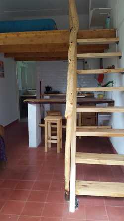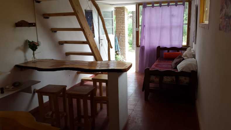 Alquier temporario monoambiante frente al Rio Tala Huasi, cuenta con cama matrimonial en entrepiso y cama chica en planta baja. A estrenar ! Cochera, quincho y asador.