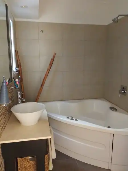 Casa 1 dormitorio, living comedor, cocina, baño con hidromasaje, patio verde con parrilla, entrada de auto.