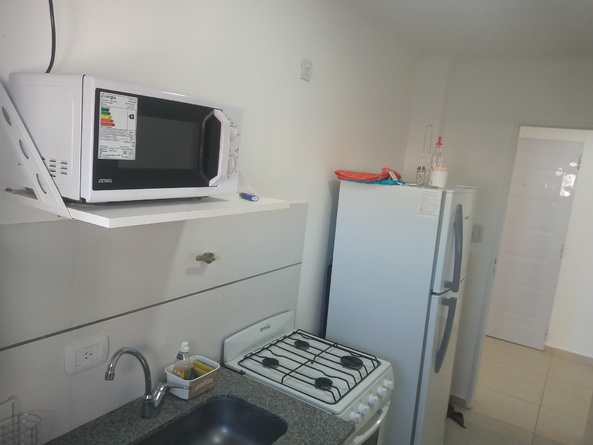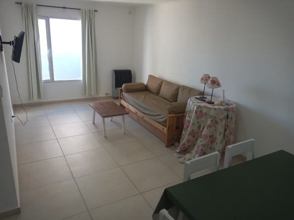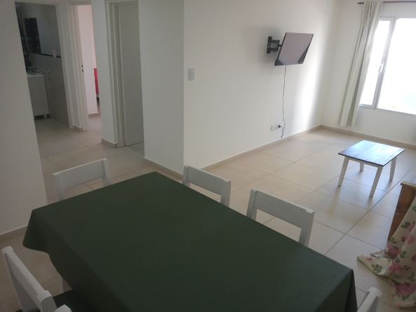 Departamento equipado para 4 personas, en primer piso, luminoso y tranquilo, nuevo a estrenar, con estacionamiento descubierto incluido en espacio en común, wifi, netflix, cocina, microondas, cafetera, y pava eléctrica.