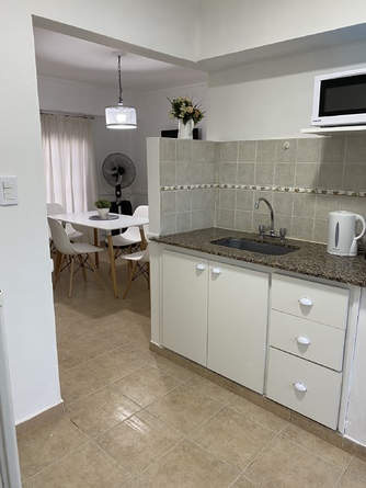 Departamento céntrico en planta baja. Muy luminoso con amplio patio. Equipado para DOS personas. Dormitorio con sommier y colchón de resortes , amplio placard, cocina completa, vajilla, microondas, cafetera y pava eléctricas , heladera con freezer. Living comedor con smart TV, wifi. Se alquila mínimo 2 días.. Incluye sábanas , toallas, ropa de cama y estacionamiento propio dentro del complejo. No hay cargos extras por ningún concepto.