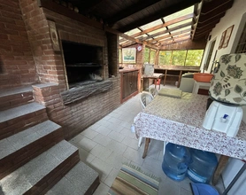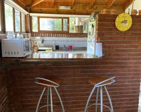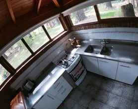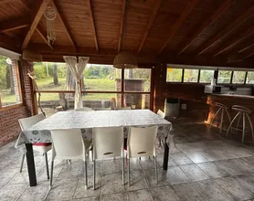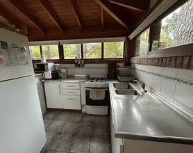 La casa cuenta con una cocina comedor “quincho” de 30m2 con vajilla completa , con vista al bosque.