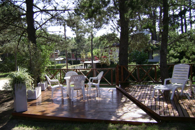 Planta Baja: living con un sofa-cama y sofa de 3 cuerpos, LED 42 y DVD, comedor equipado con ocho sillas, cocina con microondas con grill, heladera non frost con dispenser,cocina con encendido electronico, cafetera, vajilla completa, garage que se comunica con el comedor, deck con juego de jardin, parrilla con patio, baño completo