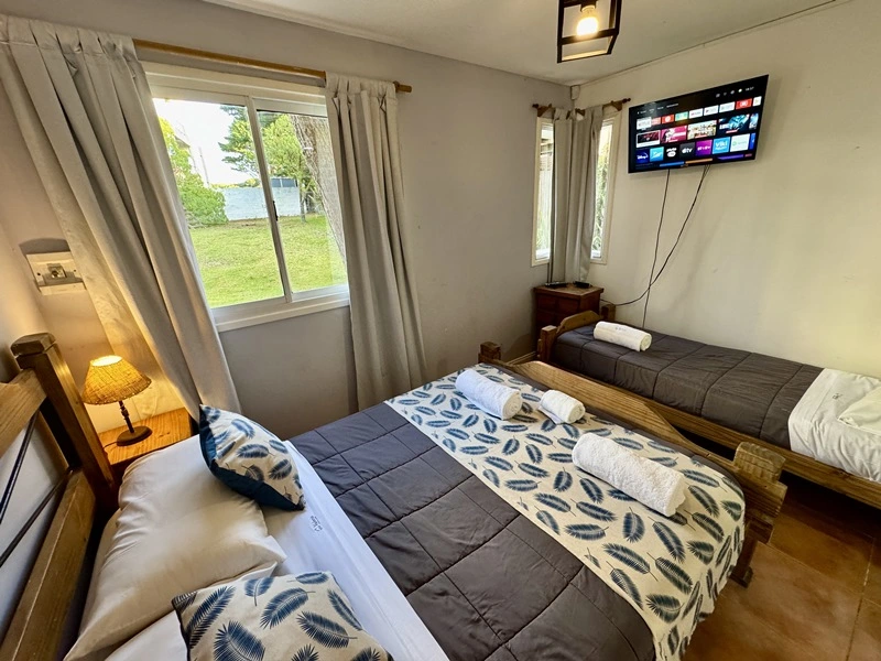 Unidades de 2 y 3 personas en planta baja y dúplex de 4 a 5 personas en planta alta, equipados con Smart TV 32”, Netflix, Directv, placard, calefacción, ventilador de pie, caja fuerte, cocina con vajilla completa, 3 hornallas, heladera, microondas, living y comedor diario.