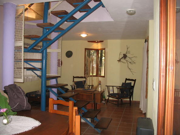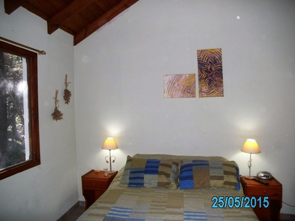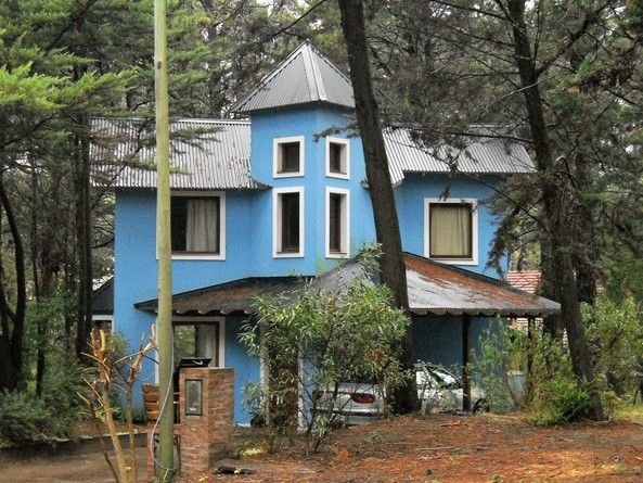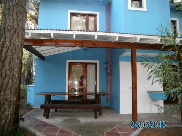 Lindo chalet en el Bosque a seis cuadras de la playa y a dos de Carilo, terreno arbolado con lindos sectores de Sol. LA CASA AZUL, Cochera semi cubierta, en Planta alta dos dormitorios, uno matrimonial con sommier y otro con dos camas superpuesta y otra todas de una plaza, Baño completo con bañera. En Planta Baja cocina equipada con vajilla para 6 personas, frezzer, microondas,etc , Estar con sillones y sofa para un sexto ocupante, Led con DirecTV y toilete con ducha.- Galeria techada con mesa y bancos de quebracho, parrilla, otra galeria al Estar y lavadero con ducha exterior techado.-