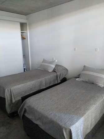 Dos camas sommier de una plaza con catre debajo, un sillón cama y un sofá de tres cuerpos, aire acondicionado, wi fi , tv con Netflix y teléfono para llamadas locales.