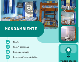 VALERIA DEL MAR. FINDE LARGO OCT. Monoambiente para 4 personas. Wifi. Estacionamiento privado.