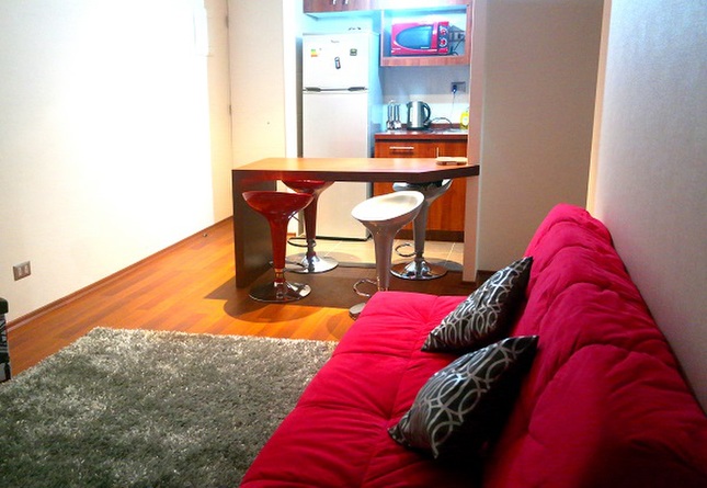 Departamento full amoblado para 5 personas. Cama matrimonial, camarote y futón. Cocina equipada, TV led y terraza. Condominio con quincho, gimnasio y azotea con vista a la bahía y fuegos artificiales en noche de año nuevo. Transporte a la puerta del edificio y a 5 minutos del plan, sector residencial y seguro, cercano a supermercado, hospital, farmacias y otros.