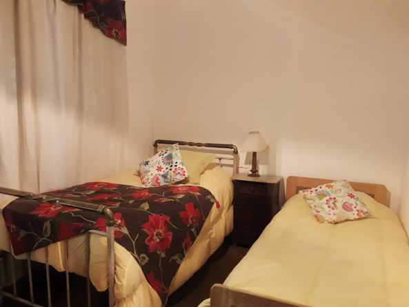 Tiene dos dormitorios y dependencia, el primero tiene cama matrimonial y el segundo es doble.