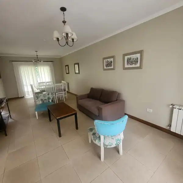 La sala con cómodos sofás y el comedor para ocho personas invita al relax y la reunión; y para entretenerse, poseen Smart TV, TV por cable e internet wi fi.