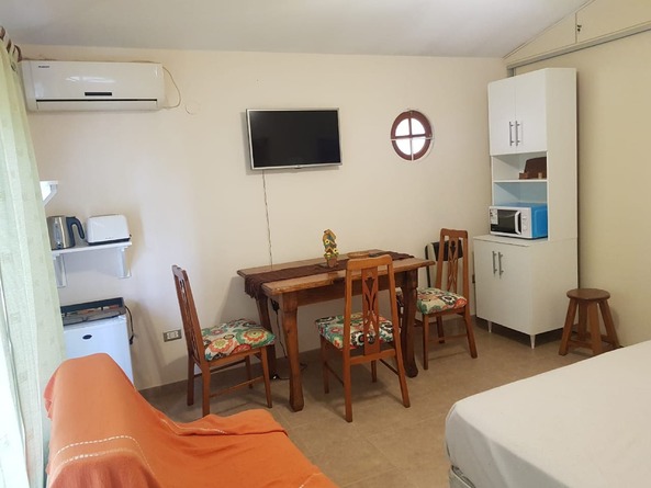 EQUIPADO CON TODO!!! SOMMIER 2 PLAZAS, FUTON CAMA, VENTILADOR DE TECHO, AA FRIO CALOR, CALEFACTOR GAS NATURAL, FRIGOBAR 70 LTS, PAVA ELCTRICA, TOSTADORA, MICROONDAS, SECADOR DE CABELLO. TAMBIEN VAJILLA COMPLETA. SABANAS, TOALLAS!