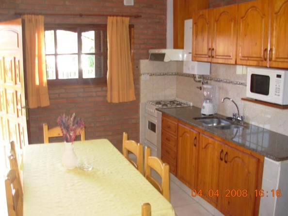 Cabañas de 2 dormitorios totalmente equipadas, amplia pileta de natación, dek solárium con vista a las sierras, asador propio, mini cancha de basquet, cocheras cubiertas con 2 portones automáticos, ubicadas en excelente barrio residencial a 8 cuadras de la peatonal, con capacidad para 5 ocupantes.