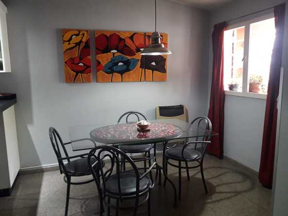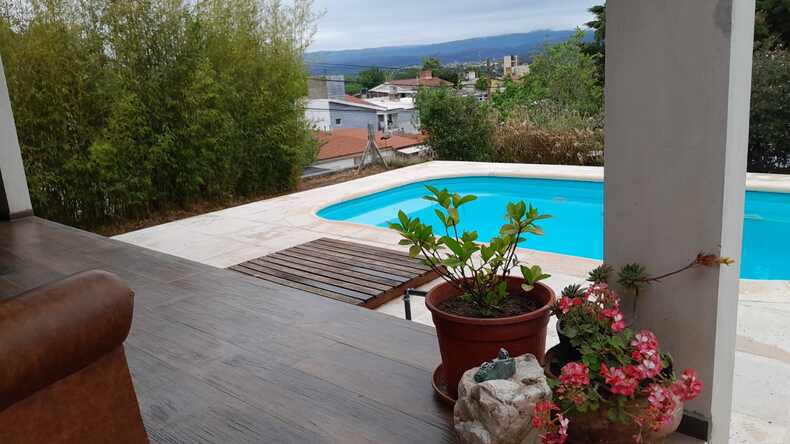 La pileta es compartida con sólo una vivienda mas en el mismo terreno. Se encuentra en el Barrio Centro de inquilinos, un barrio tranquilo en una loma que permite un paisaje maravilloso. Tiene pileta y cochera techada. El patio es grande y agradable. Se escuchan los pájaros por la mañana. Al frente hay una cancha de futbol para los niños. No hay problema con los vecinos.