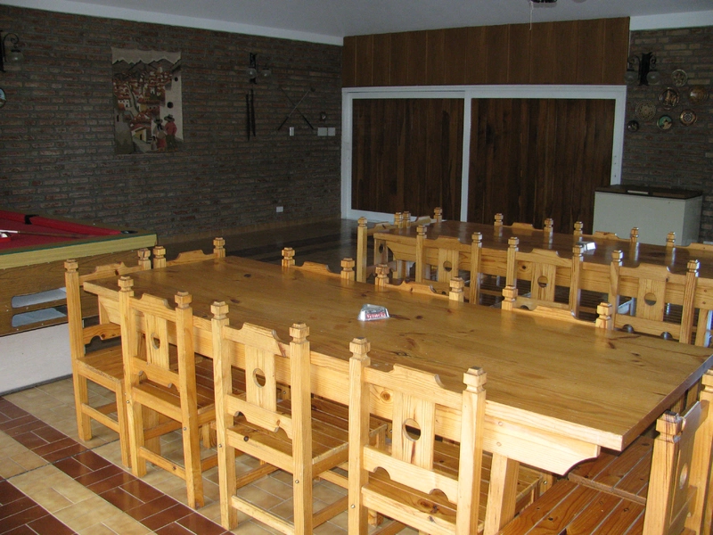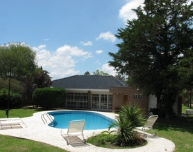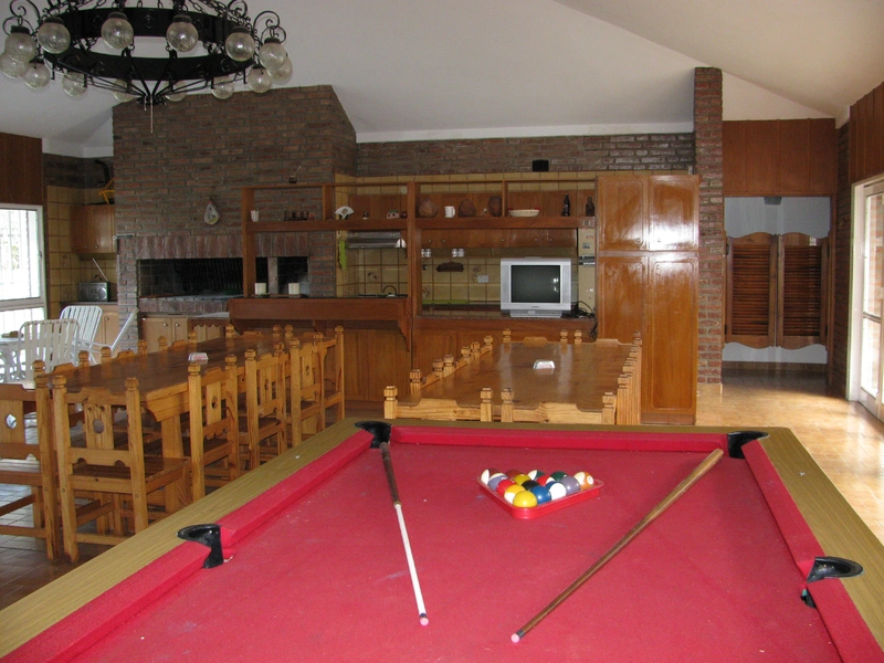 La propiedad tiene 220m2 cubiertos,es un gran salon tipo loft,con asador incluido,porton para ingreso de 2 vehiculos(dentro del mismo),mesa de pool,anafe(no hay horno) si microondas,heladera,Tv Smart por cable(en el salon)y Wi-fi .El gran salon tiene ventiladores de techo.Tiene 2 dormitorios:uno con 2 camas individuales apareadas y un sofa cama y el otro con 4 camas individuales(los 2 dormitorios tienen aire acondicionado):Hay 2 baños,uno en zona de dormitorios y el otro frente a la pileta( para uso comun exterior).Tienen ingreso independiente por otra calle(contrafrente calle Independencia)En la cancha de tenis se dictan clases individuales (se puede usar en horarios a consultar)