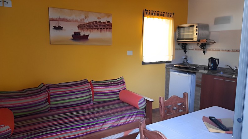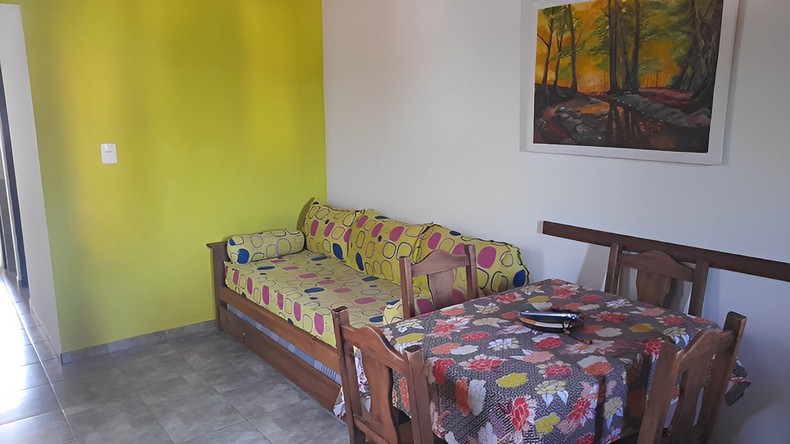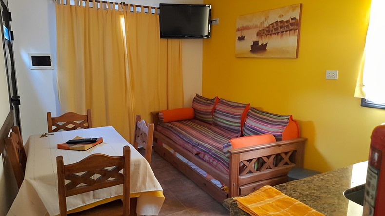 - Departamento en planta alta equipado con cama matrimonial, cama marinera, heladera con freezer, cocina, vajilla completa, ventiladores en todos los ambientes, LED 32´, TV por cable, ropa blanca.
