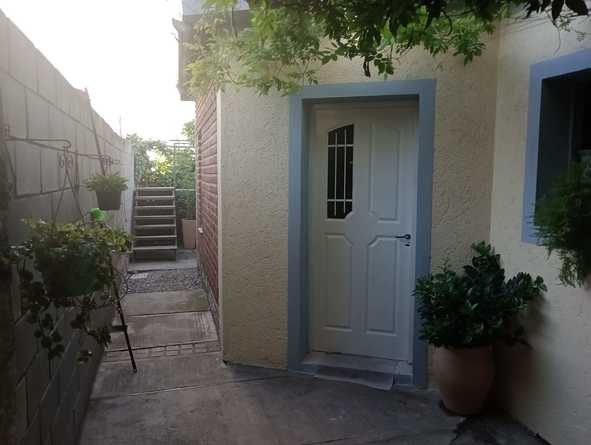 Baño privado y patio exclusivo con un asador.