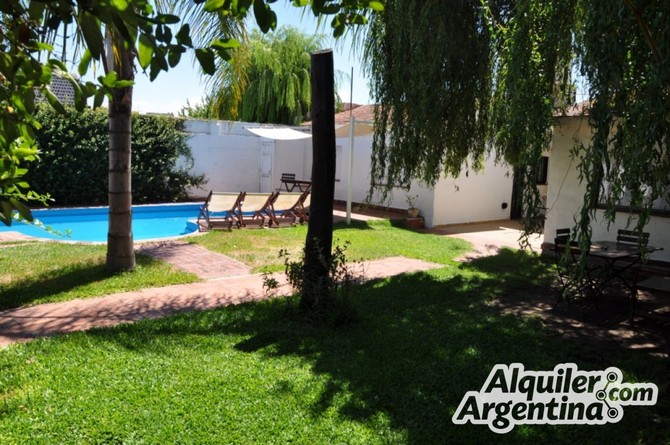 SON SOLO 2 dptos,(tipo casa) en una misma propiedad (NO ES COMPLEJO), con capacidad para 5 personas cada uno, equipados con television por cable (89 canales), WIFI, heladera con freezer, sommier, TV LCD de 24" con HOME THEATER con EQUIPO DE MUSICA en cada hab principal y TV con DVD en la de los niños (poseen cubrecamas y frazadas, NO asi, sabanas y toallas) lavadero, calefactores, gas natural, PILETA MUY GRANDE de 3 x 10 mts (ilumnada), parque, espacios de sombra, asador iluminado y cocheras dobles con porton electrico a control remoto y sensor de movimiento. Ubicado en zona residencial, muy tranquilo y super SEGURO (Santa Fe 1740, barrio Las Vertientes, NO ES CERCA DE LOS RIOS NI DETRAS DEL CENTRO, ambas zonas MENOS seguras), a 3 cuadras de Av San Martin y a 17 de la peatonal.