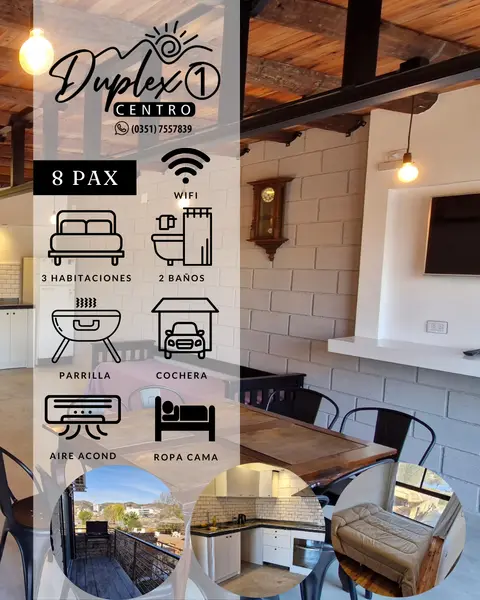 Vivisierras,en el corazón de Villa Carlos Paz. Frente al lago a dos cuadras del reloj cucú. A pasos del centro y metros del nuevo puente peatonal, nació este exclusivo y moderno duplex de 3 dormitorios y dos baños, donde la amplitud es una característica significativa. Con estilo industrial moderno pensado y diseñado para personas exigentes que priorizen la comodidad y tranquilidad sumergidos dentro de una postal con una vista privilegiada. Balcón con asador privado, cerradura con tarjeta e ingreso con control de acceso. Cochera, wifi y camas queen brindando el mayor confort en la zona central de Villa Carlos Paz. www.vivisierras.com.ar