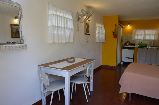 🟠Está equipado con cama de 2 plazas, ventilador, heladera, pava eléctrica y vajilla completa.