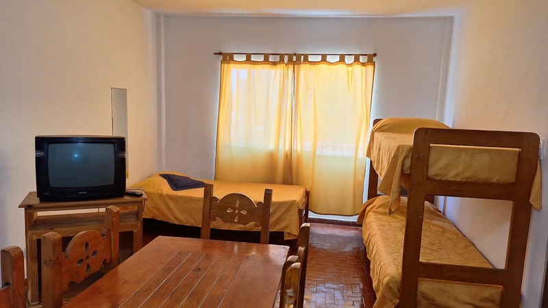 Living comedor amplio de mas de 7 metros en un extremo la cocina equipada y mesa comedor, en el otro extremo una ventana interna con ubicación norte lo que permite tener luz todo el día viendo el amanecer y atardecer. En este mismo extremo del ambiente se encuentra una cama cucheta para dos personas y una cama simple de una plaza. A demás cuenta con un baño totalmente refaccionado.