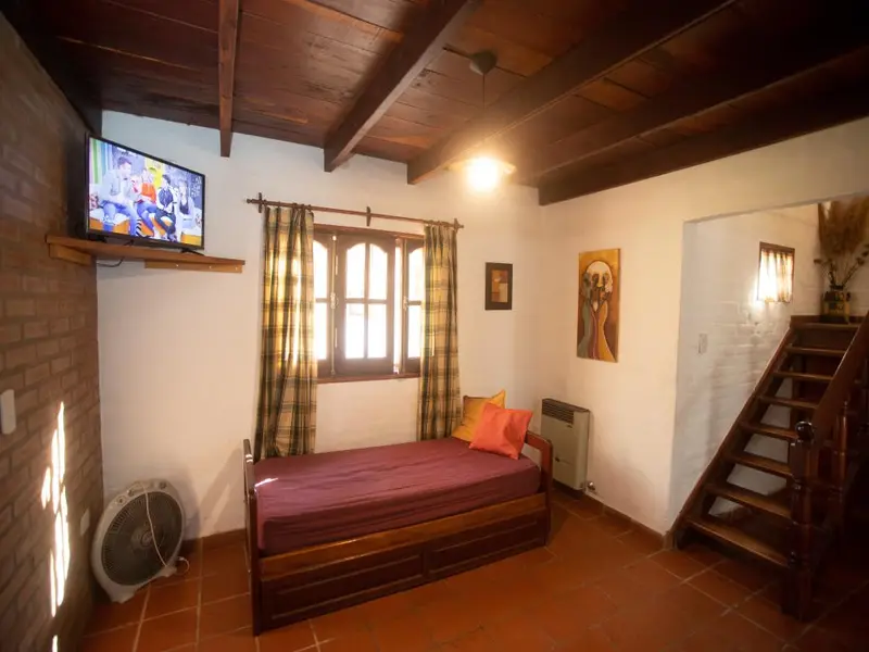 - Cabaña de un dormitorio matrimonial, el otro con dos camas individuales, más un diván cama en el living comedor que se puede hacer hasta dos camas individuales.