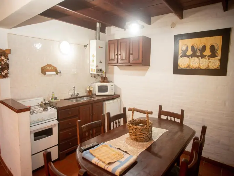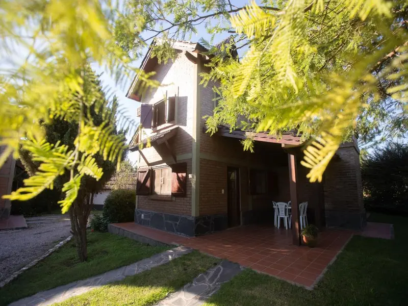Las cabañas de dos dormitorios, poseen cocina con horno, TV por cable, heladera, microondas, todos los utensilios de cocina, garaje techado de tejas y asador individual al costado de la cabaña, los dormitorios están en planta alta, los dos poseen ventiladores de techo, el matrimonial también aire acondicionado frio ó frío calor seguú la cabaña, se provee ropa de cama y baño.