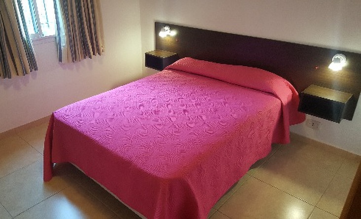 Construcción nueva. Dos deptos en planta baja y dos en planta alta. Dos dormitorios,(uno con cama 2 plazas y otro con 2 camas), en el living hay un sofá cama con otra cama carrito que sale de abajo. Ambientes amplios. Deptos de 50 m2. Jardin adelante y atras con parrilla.