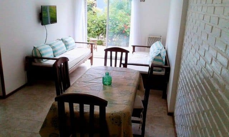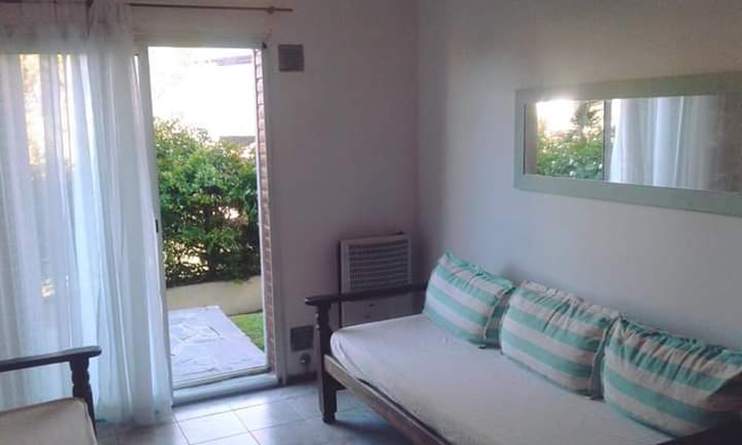 Baño. Living comedor amplio con 2 sofá cama, tv led y salida al patio. Cocina totalmente equipada, microondas, freezer, pava eléctrica. Servicio de ropa blanca. Secador de cabello. Cochera cubierta. Capacidad de 4 a 5 personas. Quincho con parrilla. Patio de uso común. No alquilamos a grupo de jóvenes...