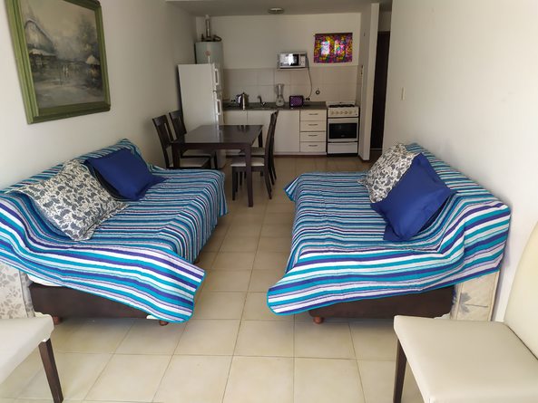 Departamento para 4 o 5 personas con amplio living comedor con tv por cable, cocina equipada con vajilla y electrodomésticos nuevos, baño con bañera, dormitorio matrimonial con tv por cable, cochera no asignada, pileta y parrillas, wi fi en departamento , hermosa vista al mar desde todos los ambientes Disponible de noviembre a marzo, x día, semana, quincena.