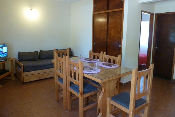 Unidad de dos ambientes equipada para 5 personas - Living-comedor con diván con carrito, cama plegable y mesa con seis sillas - Cocina completa - Dormitorio con cama matrimonial - Baño completo – Amplio parque con parrilla - Estacionamiento - Equipamiento: Vajilla completa - Heladera con freezer - TV – cable optativo – WiFi común