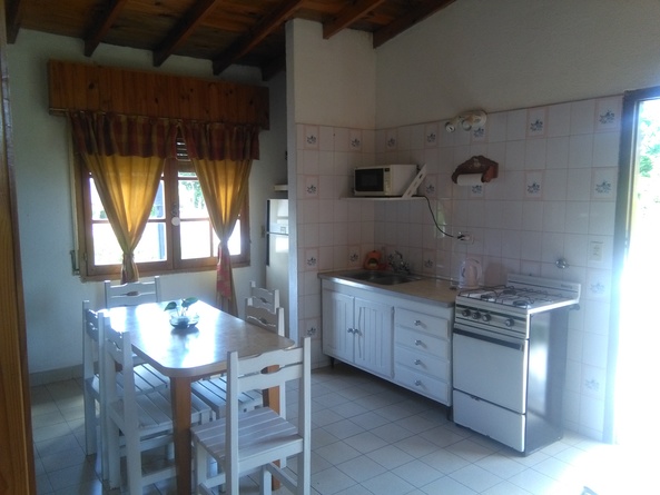Monoambiente dividido muy amplio con terraza con juego de jardín y chulengo , espacio guardacoche con porton electrico. Cocina completa heladera microondas pava electrica.etc Somiers de dos plazas cama con carrito abajo sillon cama. Baño completo con ducha. Wifi tv por cable. Gas natural . Todos los servicios incluidos.