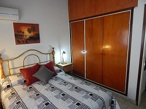 Planta Alta: Dormitorio matrimonial con somier de dos plazas , LCD/cable, ventilador de techo, aire acondicionado.