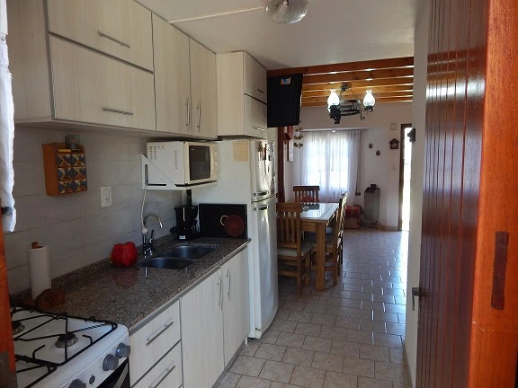 COCINA: integrada con microonda, cafetera eléctrica, tostadora eléctrica, juguera, pava eléctrica, vajilla completa, heladera con freezer.