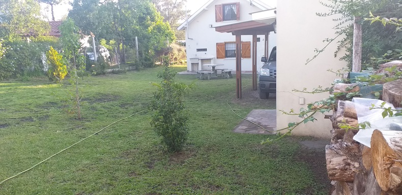 Casa tipo cabaña con 2 dormitorios, cocina, comedor, baño y living. Gran parque con cochera cubierta, parrilla y baño exterior. Disponible 2da quincena diciembre- 1ra enero- 2da febrero