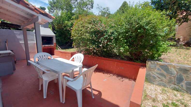 PA: 1 dormitorio con 1 cama de 1 plaza, 1 estar con 1 cama de 2 plazas balconeando el living. PB: living comedor cocina en 1 ambiente amplio con barra desayunador, 1 dormitorio con 2 camas de 1 plaza, 1 baño completo con ducha, patio con parrilla y lavadero, parque al fondo, estacionamiento descubierto dentro de la propiedad cerrado con portón.