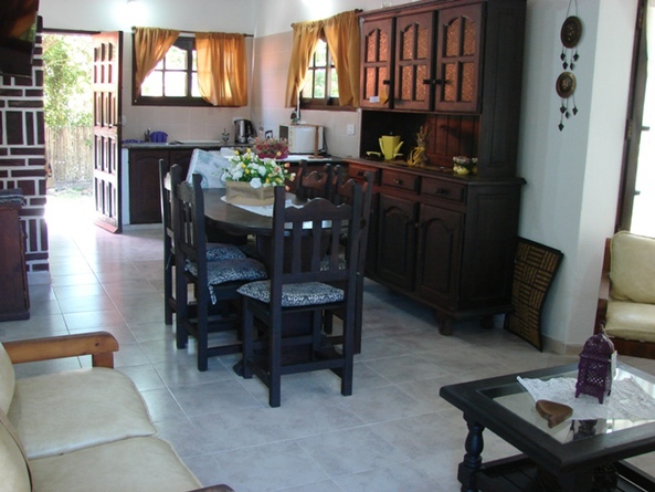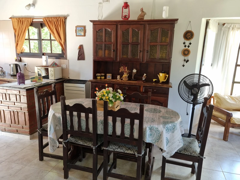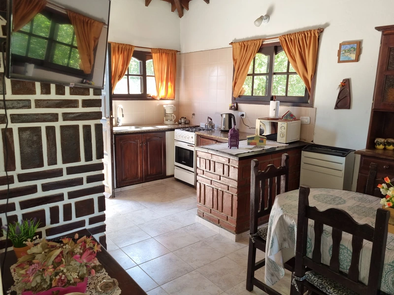 Cocina completamente equipada con menaje, vajilla completa para 8 personas, cocina convencional a gas, heladera con freezer, microondas, cafetera eléctrica, pava eléctrica, exprimidor de jugo eléctrico, juguera eléctrica, tostadora eléctrica, lavarropas automático de carga frontal, plancha eléctrica.