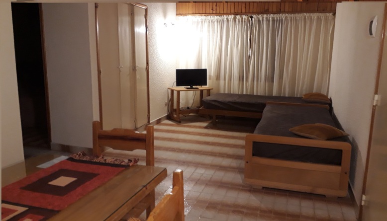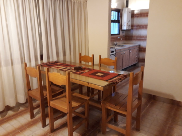 PB - Unidad de dos ambientes equipada para 5 personas - Living-comedor con diván con carrito, cama plegable y mesa con seis sillas - Cocina completa - Dormitorio con cama matrimonial - Baño completo – Amplio parque con parrilla - Estacionamiento - Equipamiento: Vajilla completa - Heladera con freezer - TV por cable – WiFi común