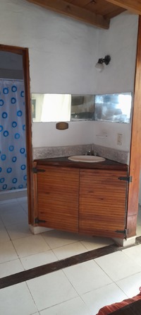 ZONA SUR. A 4 CUADRAS DEL MAR Y A UNA CUADRA DE LA AV 3. - Ideal para matrimonio y un niño/a. Entrada de auto con cochera techada y cerrada. Acceso por sendero entre vegetación. Porch con juego de jardín. Living comedor, cocina separada, ante-baño y baño completo, DUCHA CON EXCELENTE CAUDAL DE AGUA CON BOMBRA PRESUDIZADORA. Cama matrimonial, habitación infantil o single, y cuarta cama en el living que hace las veces de sillón. Patio con parrilla, pileta para lavar y sector para colgar la ropa, todo independiente para uso exclusivo.