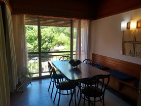 Departamento para 6 personas, con 2 habitaciones con 3 camas cuchetas, cocina con anafe, microondas, vajilla completa, comedor, baño, tv . Alojado en un predio muy amplio con jardín con parrilla, a 5 cuadras del mar. No se entrega ropa blanca.
