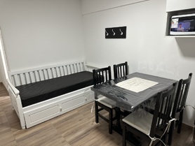 El depto tiene capacidad para 4 personas. Cable, wifi y cochera para 1 auto. Está en un segundo piso sobre línea de playa, es decir que bajas y tocas la arena. Restaurado a nuevo.