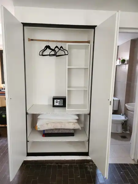 La cama son dos sommiers de una plaza que se pueden usar justos ( simulando cama matrimonial ) o por separado.