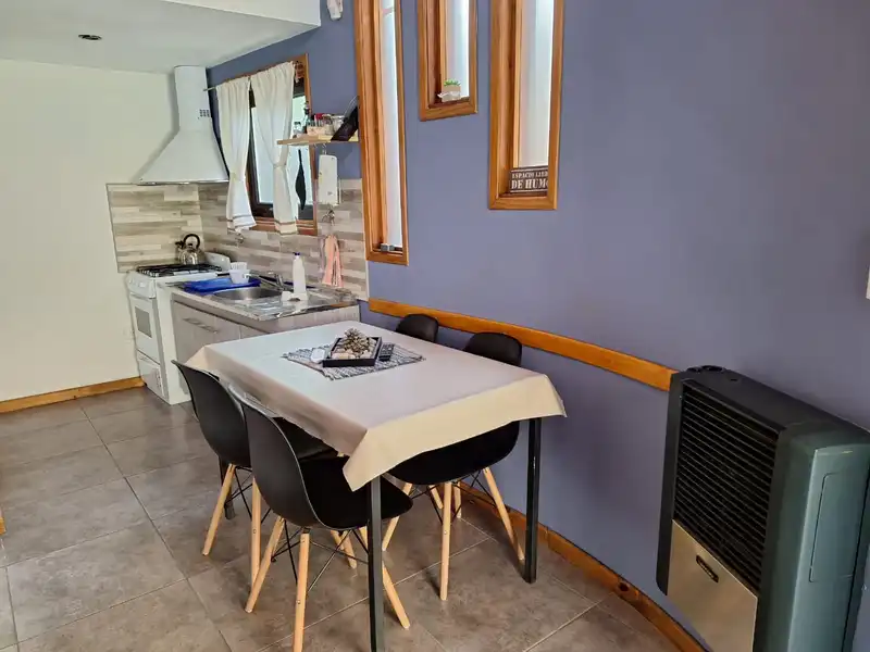 Alquilo luminoso departamento en planta baja de 2 dormitorios, matrimonial en planta baja, y 2 sommiers de 1 plaza en planta alta. Muy bien equipado, freezer, tostadora, cocina con horno a gas, calefactor, smartv 32’ con Directv con canales premiuns, wi fi.